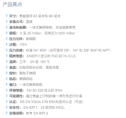Budenberg 小型表盘低压工业服务压力表15L系列